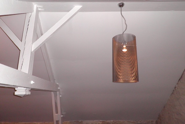 L'effet "flottant" de la suspension ARTEMIDE PIRCE est accentué de par la hauteur sous plafond de près de 3 mètres.